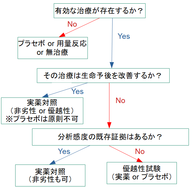 ICH E10では、対照群選択の考え方を以下のような意思決定ツリーで整理しています。