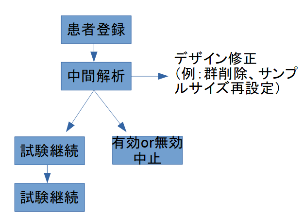 - サンプルサイズ再設定:中間解析で効果量が予想より小さい場合、必要症例数を増加。