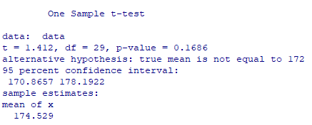\[H_0:\mu =172,\quad H_1:\mu \neq 172\]