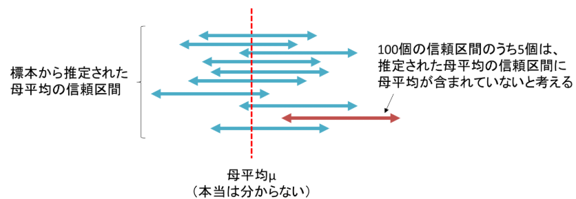 - 「この区間が95%の確率で母数を含む」とは言えない