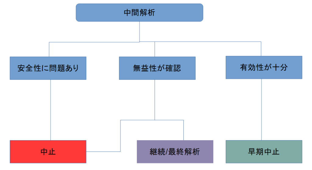 統計的厳密さが必要:途中で解析を行うと「有意差が偶然見えてしまう」リスクが高まるため、統計的な補正(例:有意水準αの調整)が不可欠です。
