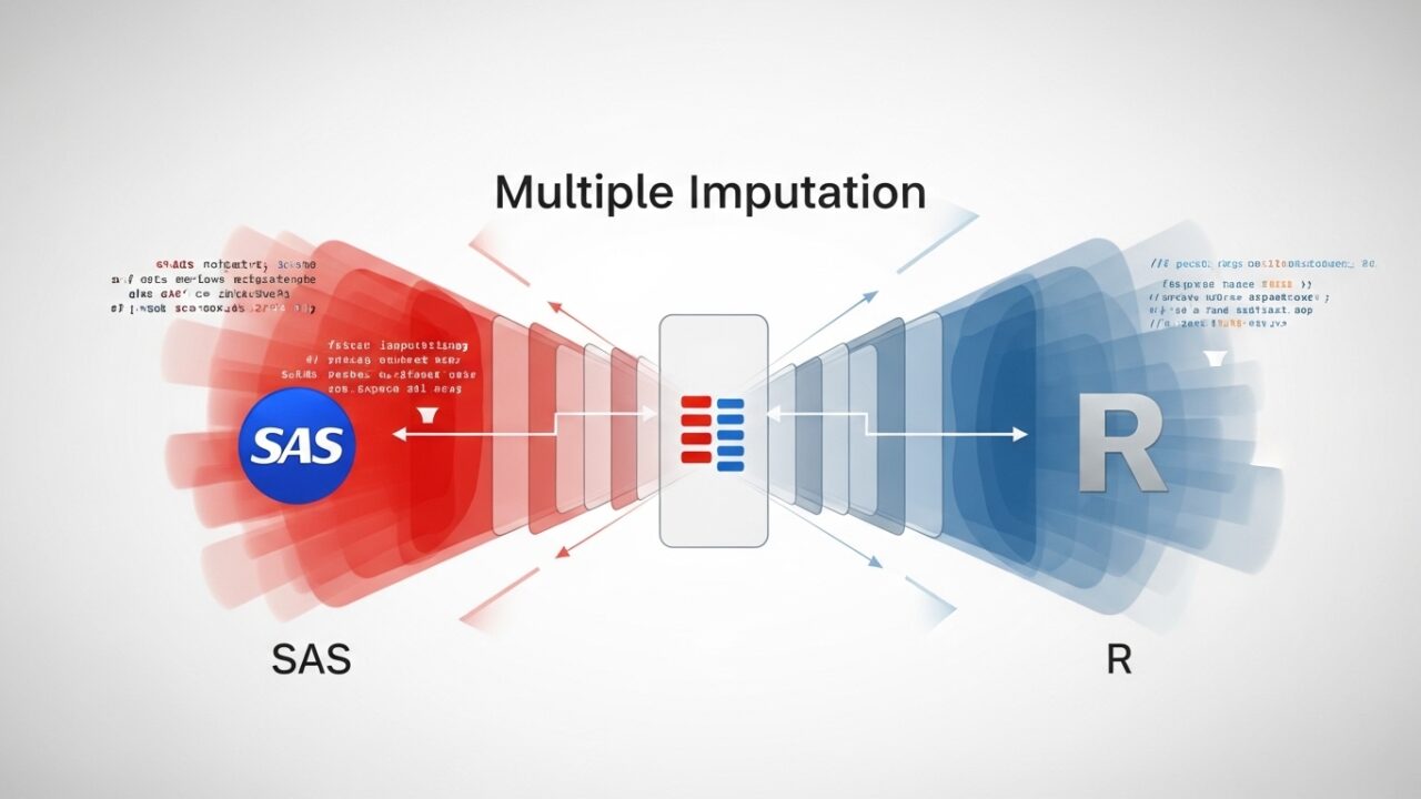 本記事では、SAS と R で MI を実行し、結果を解釈するところまでを実際のプログラムコードとともに解説します。