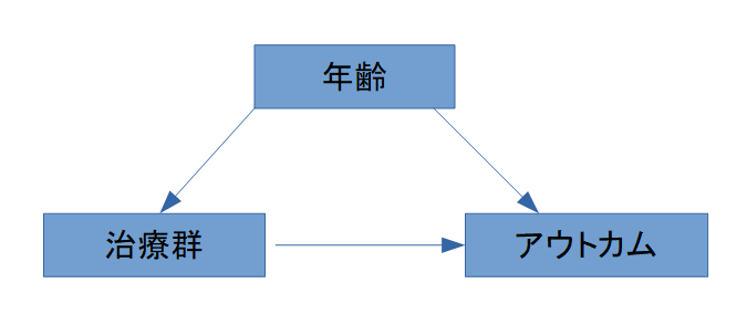 - この「バックドア経路」を閉じる(=年齢で調整する)ことで、治療の純粋な効果を推定できる。