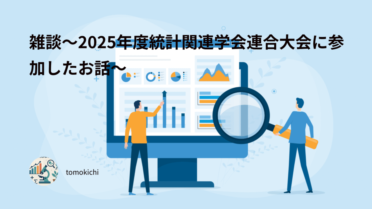 今回の記事は雑談ということで、2025年度統計関連連合大会に参加してきた感想を淡々と記載していこうと思います。自分が今回参加した講演のみの所感となりますので、興味がありましたら見ていただけますと幸いです。