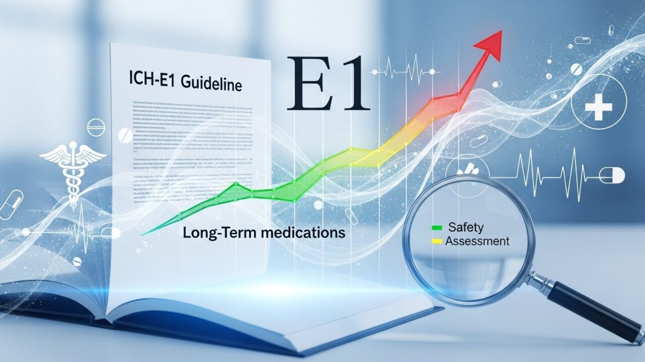 この課題に対応するため、日米EU三極の規制当局が協力して策定したのが ICH-E1ガイドライン です。本ガイドラインは、致命的でない疾患に対して長期投与が想定される新薬の治験段階における安全性評価について、国際的に調和された基準を提示しています。