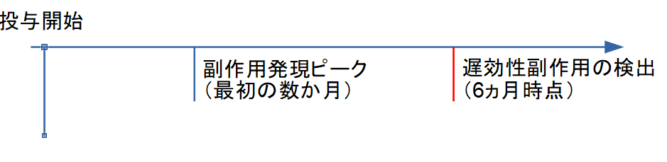 → 多くの副作用は投与開始後数か月以内に発現するが、遅発性の事象も存在するため、6か月以上の観察が必要。 - 稀な有害事象(例:1000例に1件未満)は治験段階での検出は期待されない